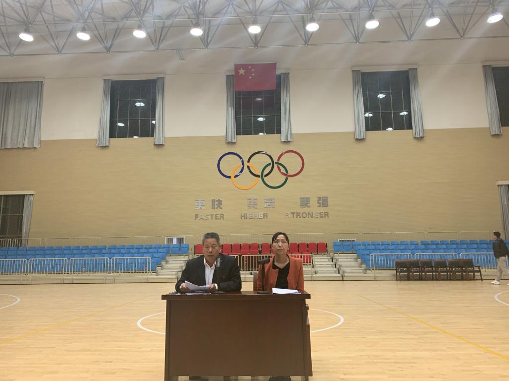 会上,副院长刘仁憨宣读了《beat365官方网站庆祝学校60周年校庆活动实施方案》,副院长雍世仁宣读了关于校庆期间体育学院纪律规定,18级社体班学生李佳明同学做了表态发言。