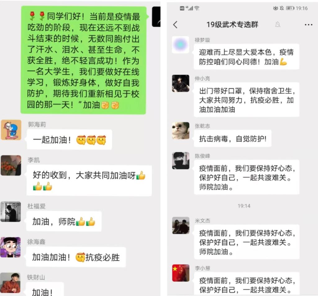 疫情阻碍了学校的正常运作,却阻止不了学生求学的渴望和老师关爱的心。面对病毒来袭、“停课不停教、停课不停学”的现状,毛老师借鉴国内外先进经验,采取课程录播+直播讲解的方式,在保障学生系统化理解武术动作的同时,通过互动激发学生对高难度动作的思考。她说:当下所有老师面临的是“没有围墙的大学校园、没有教室的教育学习和没有教师直面的讲解传授”,但无论在线下还是线上,战胜疫情所带来的挑战与困难,让学生们更好地学习,是每个老师的职责所在。