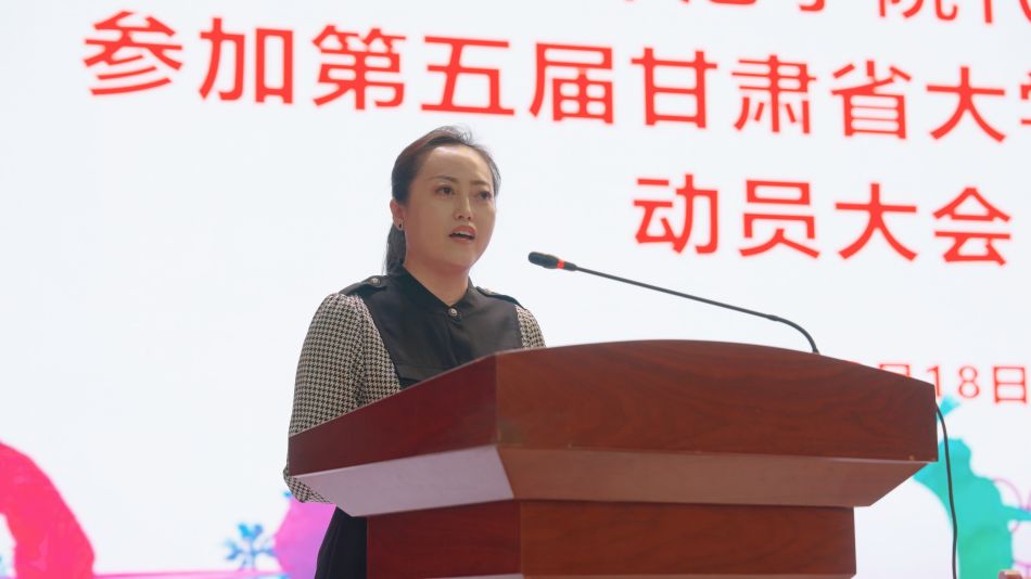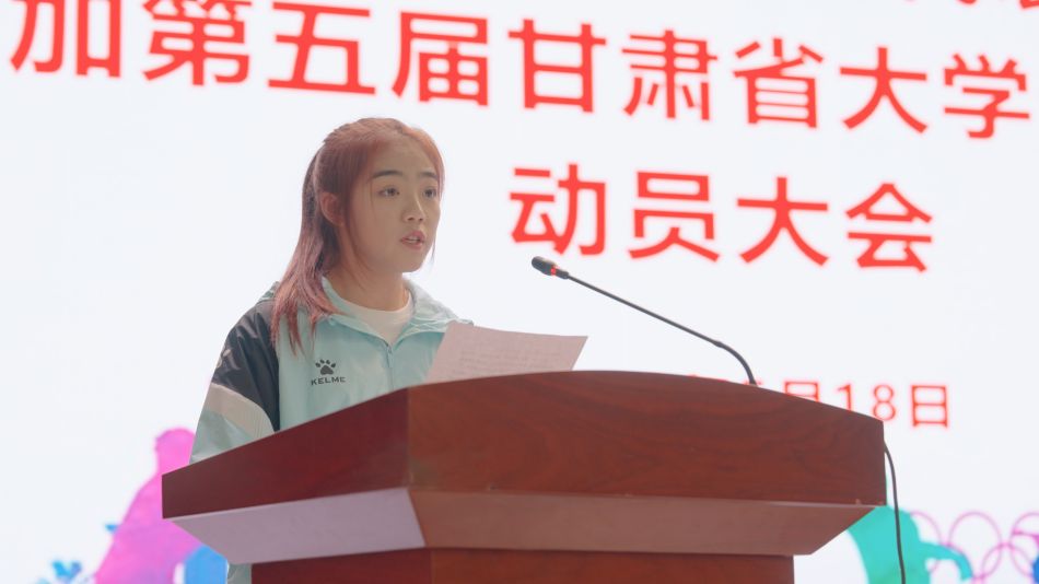 5月18日下午,学校在大礼堂举行天水师范学院代表团参加甘肃省第五届大学生运动会动员大会。校长汪聚应出席作动员讲话并为代表团授旗。