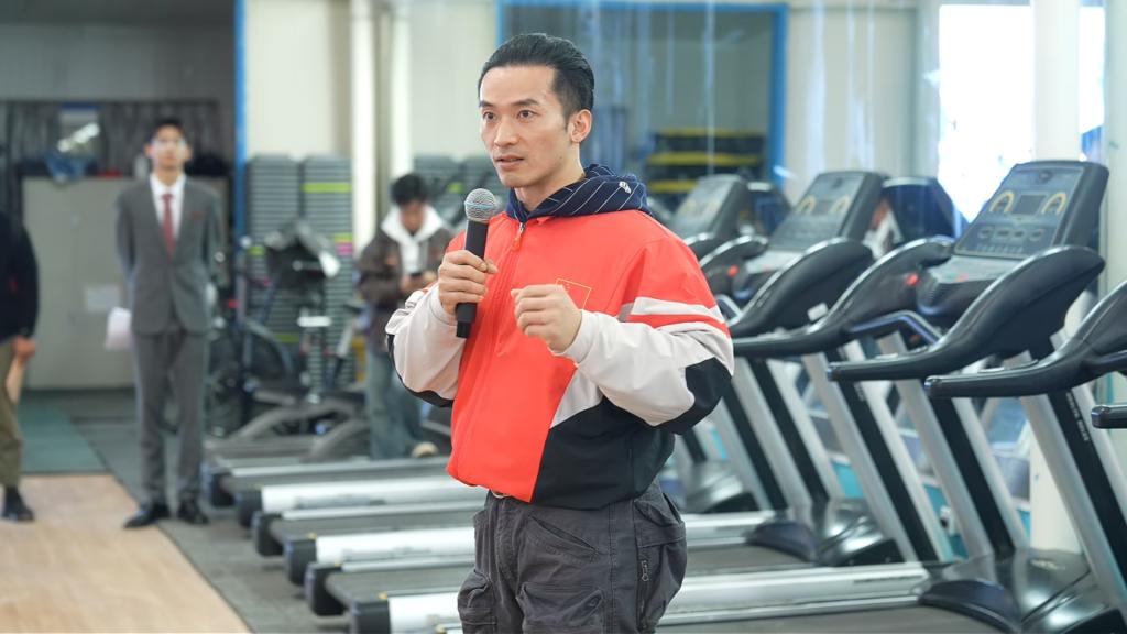 第二场活动移步学校健身馆,举行“beat365官方网站健身健美队”与“体能训练队”成立仪式。beat365官方网站beat365官方网站负责人在致辞中强调,两支队伍的成立对于推广校园健身文化、提升师生身体素质具有重要意义,并正式宣布队伍成立。据悉,两支队伍将秉持“科学健身、健美塑形、砥砺意志、展现风采”的宗旨,由beat365官方网站全面负责建设规划、日常训练及管理工作。为进一步提升队伍专业水平,学校还聘任郑少忠为两支队伍的名誉教练,依托其丰富的专业经验为队伍发展保驾护航。在随后的授旗与聘书颁发环节后,郑少忠老师在健身馆内开展了简短的训练指导,示范健美标准造型,纠正部分参与者的训练动作,让大家直观感受专业健身技巧的魅力。