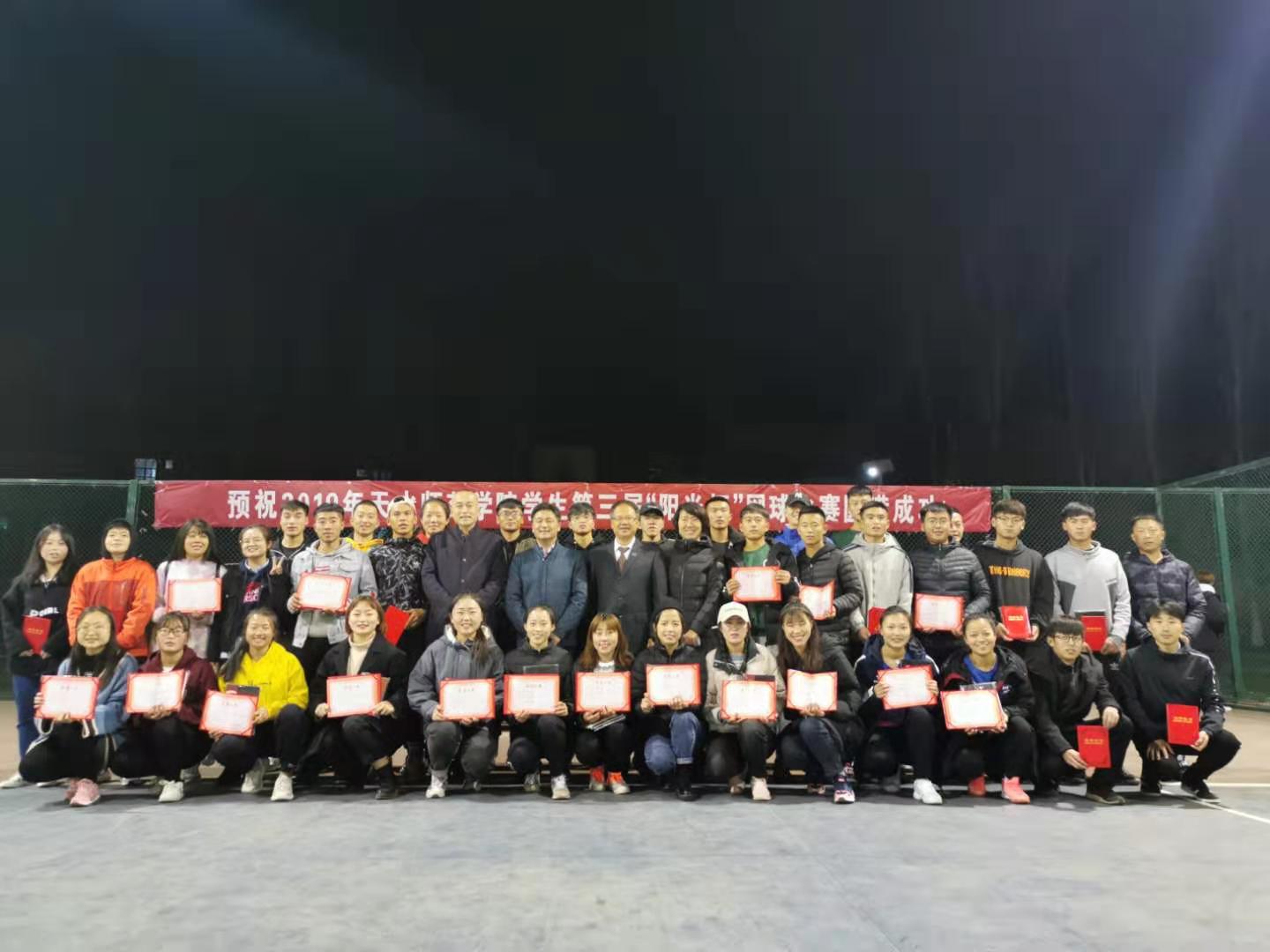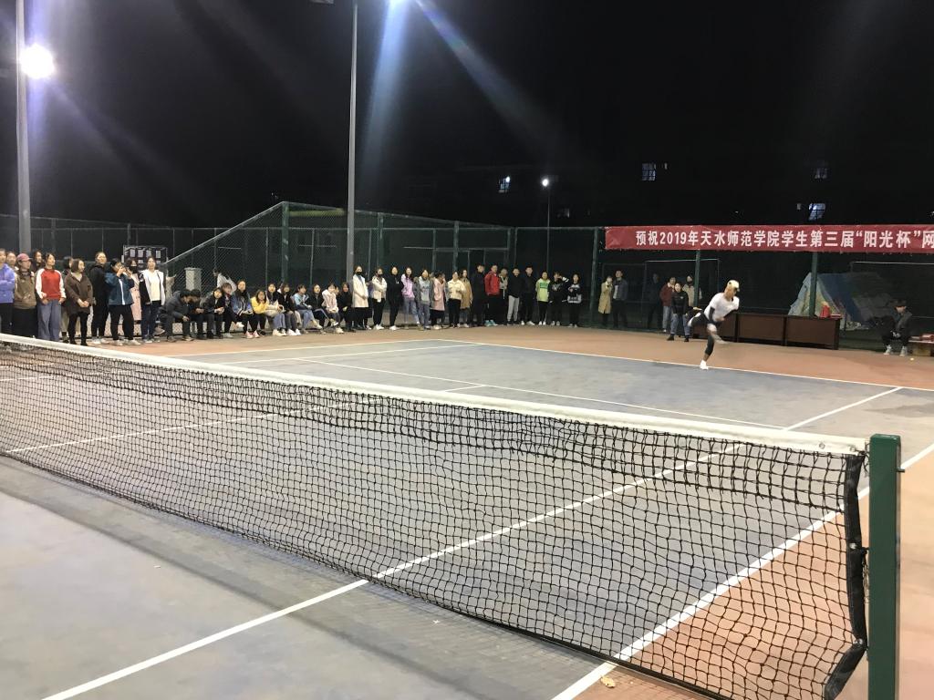 11月14日晚,天水师范学院大学生第三届“阳光杯”网球赛在网球场圆满落幕,本届比赛设男单、男双、女单、女双和混双五个单项,共有来自全校13个二级学院的257名运动员参加比赛。