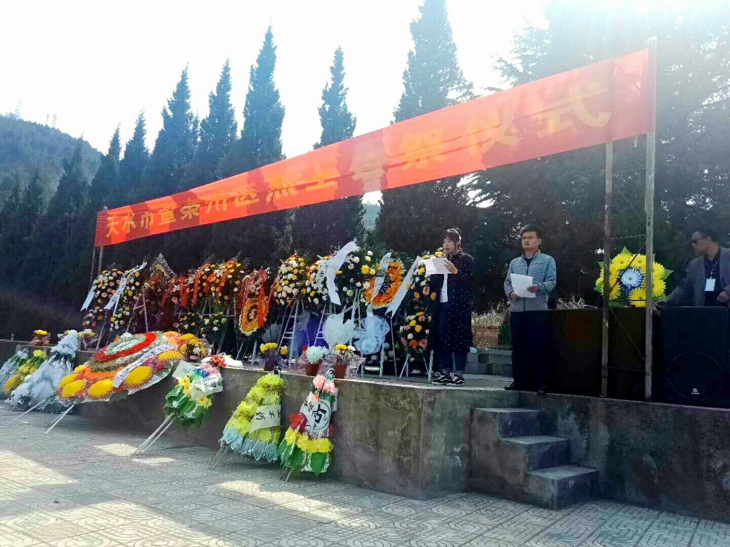 4月4日下午在清明节之际,beat365官方网站党总支组织师生代表前往天水市南山烈士陵园,开展以“扬先烈精神,颂爱国情怀”为主题的祭扫活动。参加祭扫活动的有辅导员张海军、潘婷婷、冉彩荣,学生党员、预备党员、入党积极分子以及学生会成员等50余人,活动由辅导员张海军主持。