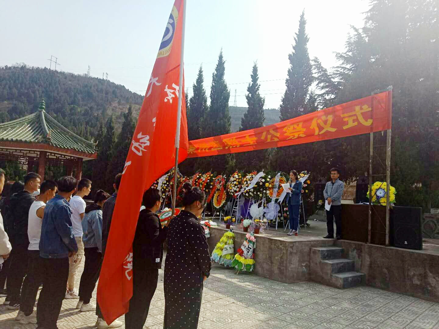 活动伊始,学生代表向先烈进献花篮;学院辅导员潘婷婷、冉彩荣整理挽联,全体师生向革命烈士以及在四川木里森林火灾扑救中英勇牺牲的烈士默哀,以表达对革命先烈的崇高敬意和无限哀思;潘婷婷老师代表教师要求师生党员及入党积极分子要学习革命精神,要铭记先烈的不朽功勋,发扬先烈光荣事迹,继承先烈的革命遗志;学生党员罗华梅代表学生作了表态发言,她表示要从自身做起,努力完成学习知识、锻造品德、强健身体的重任,以优异的学习成绩和为共产主义奋斗终身的革命情怀报效祖国。