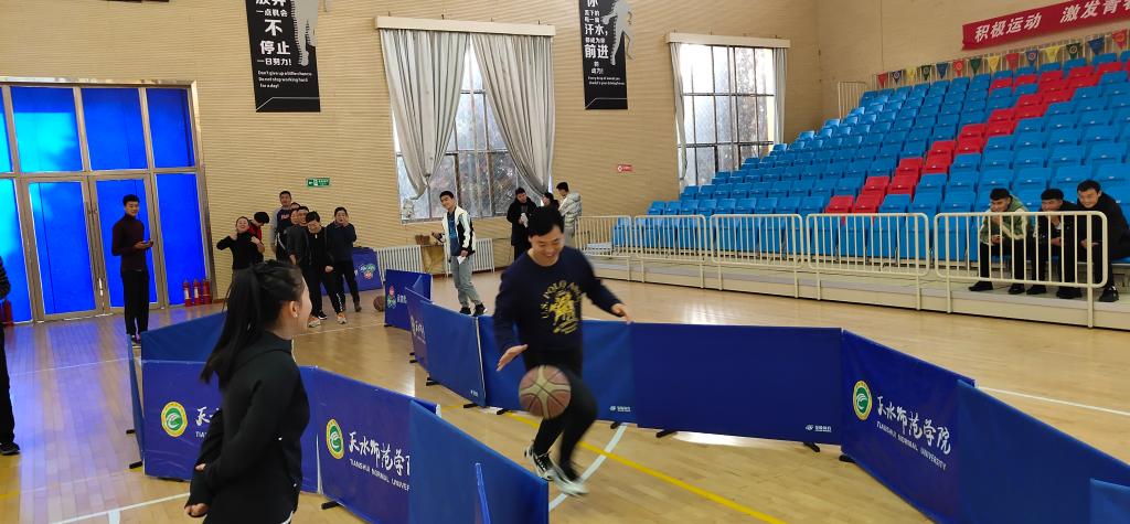 12月24日下午4:30,beat365官网分工会在体育馆举办了beat365官方网站“迎新年”趣味篮球接力赛活动,全院教职工用快乐奔跑的方式共同迎接新年的到来。学院工会主席苏兴田在开幕式上致辞,工会委员魏玉琴主持了开幕式。