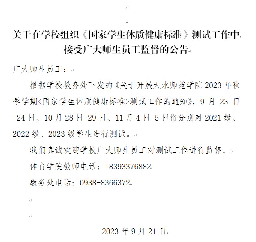 关于在学校组织《国家学生体质健康标准》测试工作中接受广大师生员工监督的公告