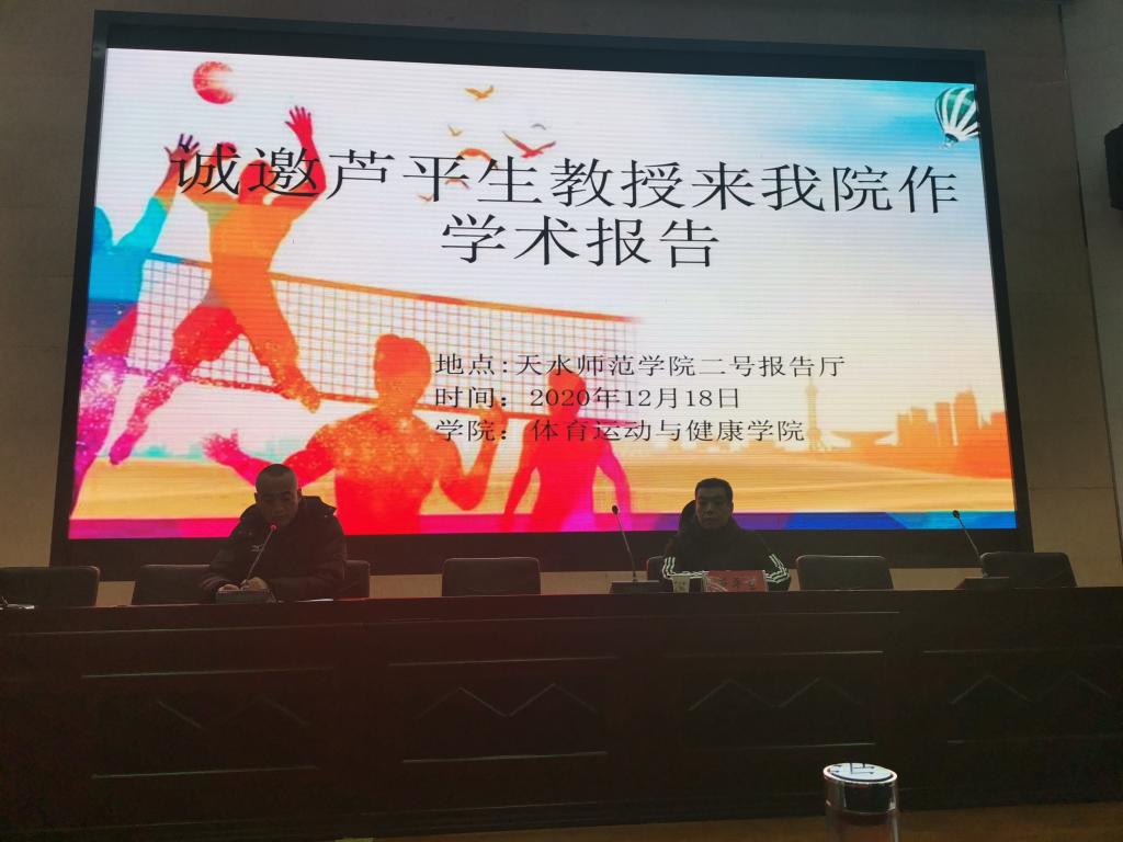 12月18日上午,西北师范大学芦平生教授应应beat365官方网站邀请,在学校二号报告厅作了题为《奋进新时代——让体育成为中华民族伟大复兴标志性事业》的学术报告。