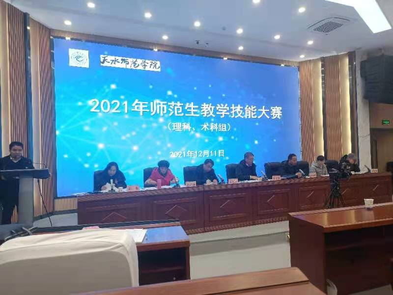 为了贯彻教育部关于加强师范生实践教育的有关精神,实现“以赛带练”,提高我校师范生教育教学能力,适应天水师范学院“应用型本科”建设需要,全面提高教育教学质量培养适应当前教育改革发展。2021年天水师范学院学生教学技能大赛(决赛)于12月11日顺利举行。本次教学技能大赛共有我校师范类专业44名学生参加。比赛分为文科组、理科组与术科组三大组别,决赛由教案设计、教学展示、教学反思三个环节组成。采用现场15分钟授课的形式进行,评委专家组均为天水市各中学骨干名师。