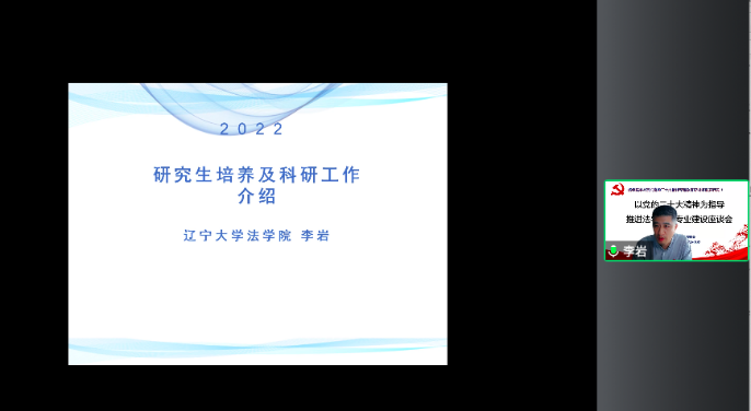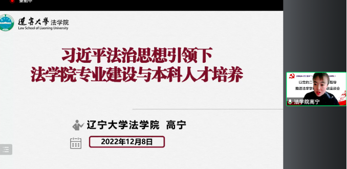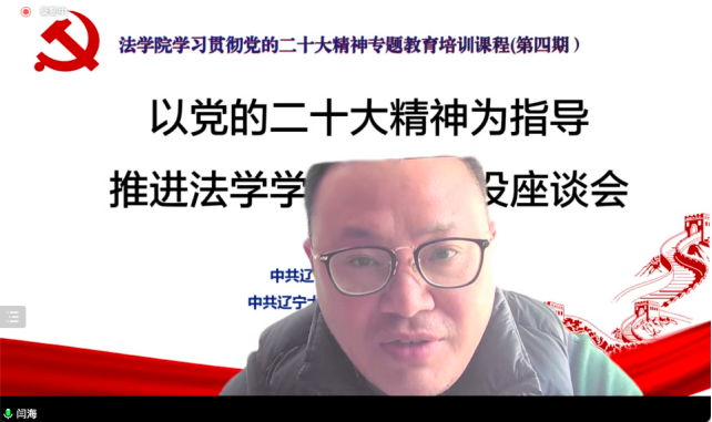 12月8日下午,3003新葡官方网站为帮助新入职教师及新晋导师融入学院,加强对新入职教师及新晋导师成长成才的支持,共同探讨教师如何积极适应国家和学校发展要求,举办了“以党的二十大精神为指导推进法学学科专业建设”线上专题座谈会。学院党委书记路军、院长闫海、党委副书记宋瑞、副院长李岩、副院长高宁、导师代表王素芬及新入职教师、新晋导师参加座谈会。