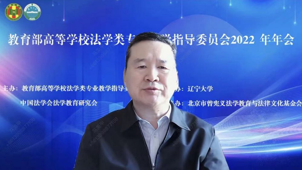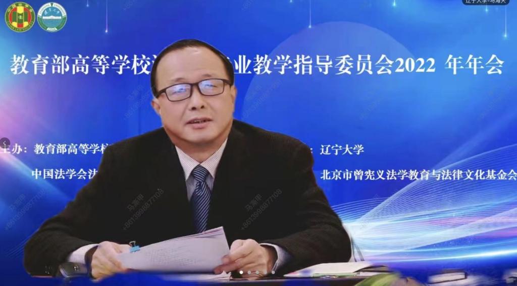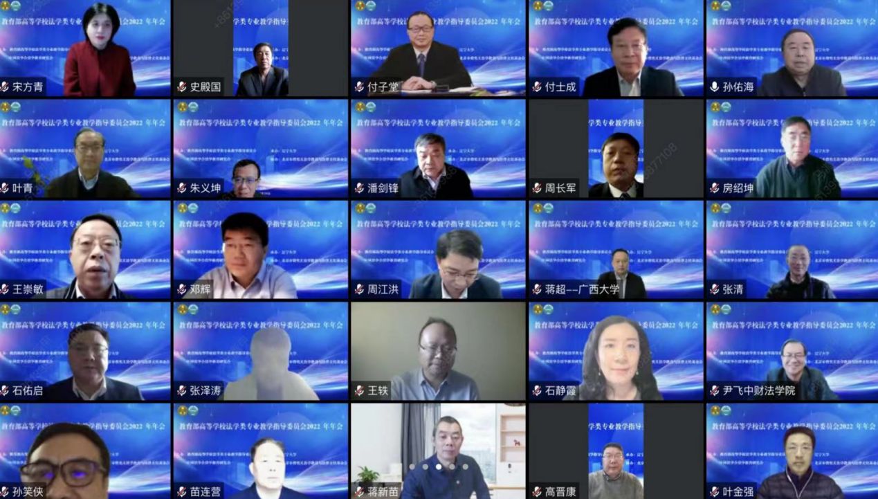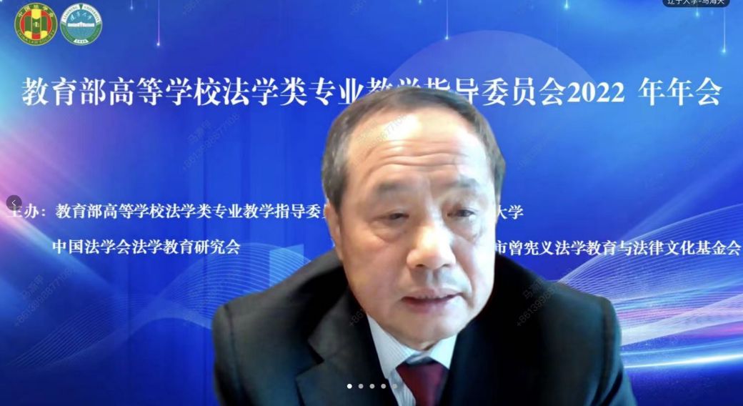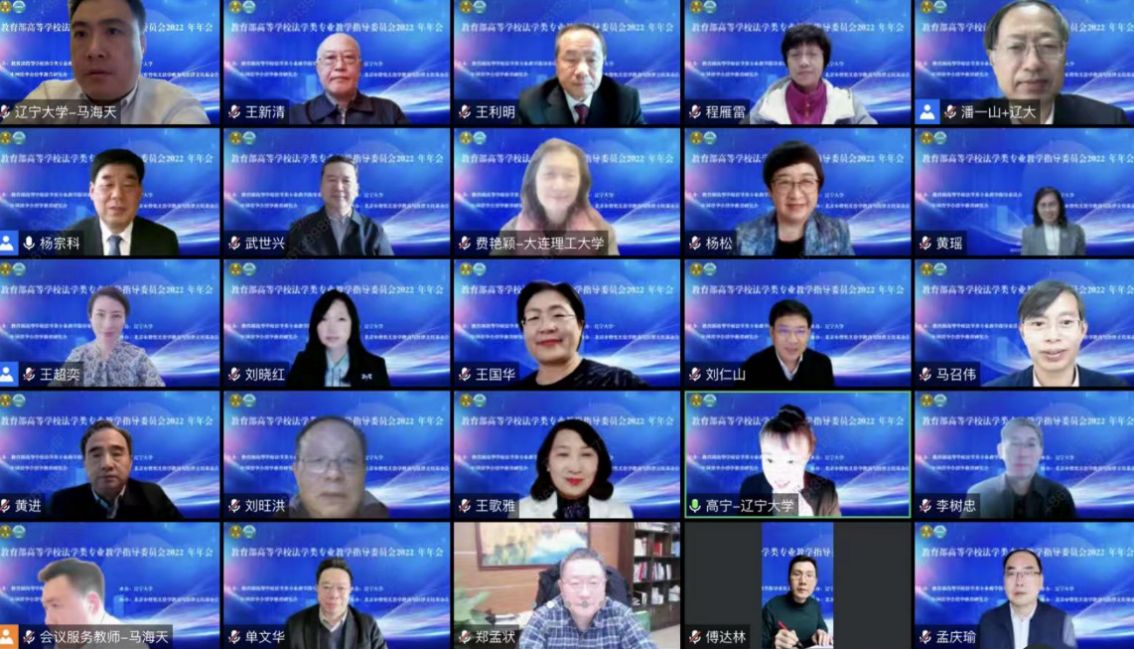 为了深入学习贯彻党的二十大精神,进一步学习贯彻习近平法治思想,努力开创全面建设社会主义现代化国家新征程中的中国法学教育新局面,教育部高等学校法学类专业教学指导委员会2022年度会议于12月16日以线上腾讯会议的方式举行。本次会议的主题为“中国式现代化与中国法学教育”,由教育部高等学校法学类专业教学指导委员会(以下简称“教指委”)主办、3003新葡官方网站承办。开幕式由教指委副主任委员杨宗科教授主持,教育部高等教育司武世兴副司长,教指委副主任委员、中国人民大学王利明教授,3003新葡官方网站党委书记潘一山教授,沈阳师范大学校长杨松教授等出席开幕式并致辞,来自全国法学教育科研重镇的专家学者90多人云端参会。