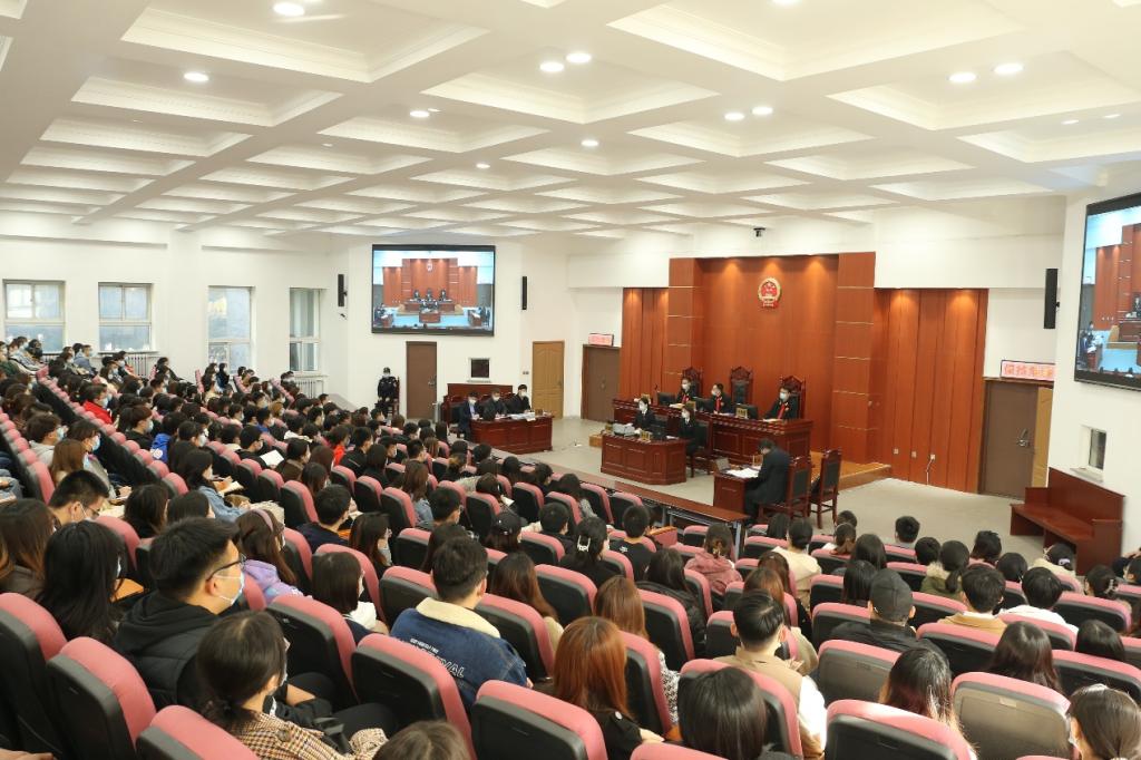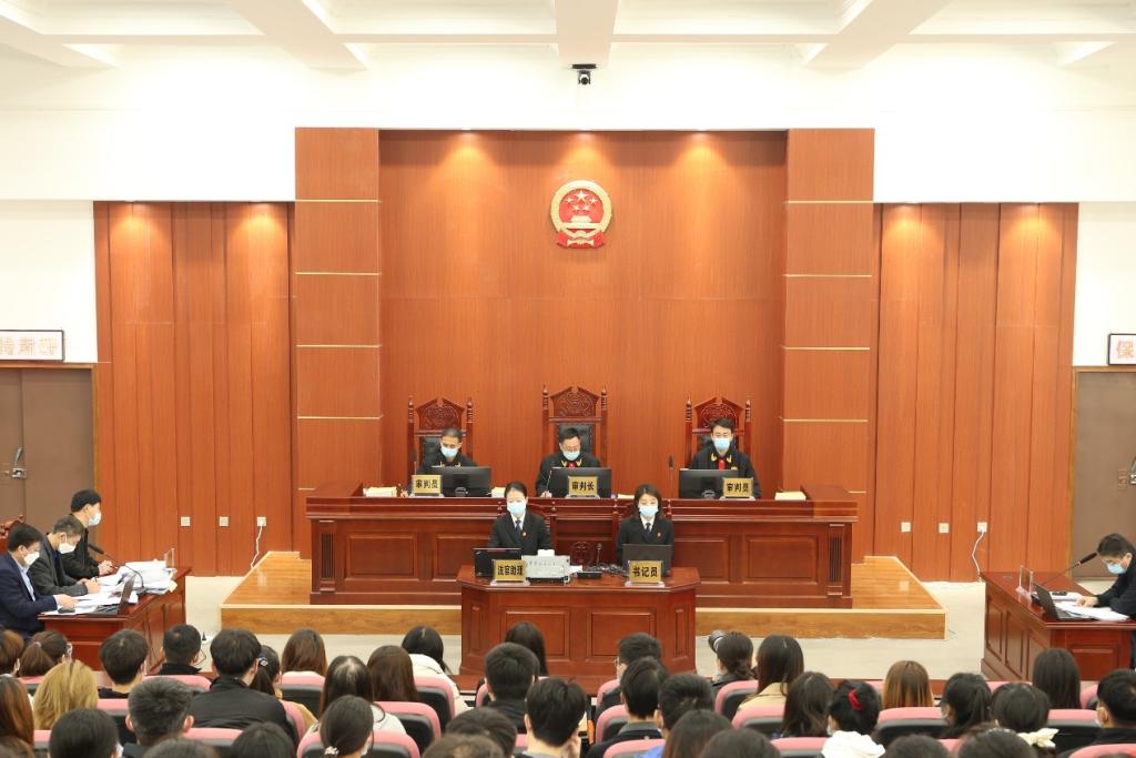 上午9:30,书记员宣读法庭纪律后,合议庭成员入场,案件正式开始审理。合议庭对案件的争议焦点进行归纳总结,在审判长的主持下,双方当事人围绕争议焦点,遵循法定程序,进行了多轮举证质证。在庭审过程中,合议庭成员及双方当事人表现出了深厚的法学理论功底与极强的职业素质,为师生们呈现了一场精彩的庭审。