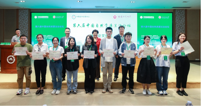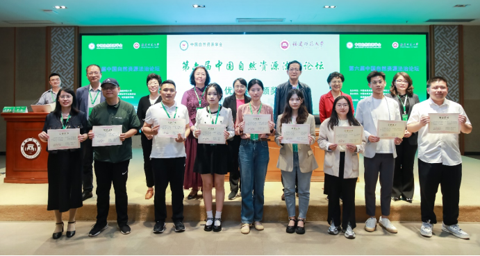 2024年4月27日,第六届中国自然资源法治论坛在福州市福建师范大学顺利召开,在会上圆满完成了中国自然资源学会资源法学专业委员会换届选举工作。我院郭洁教授继续当选副主任委员,并在大会作《国有农用地产权管理法律制度的完善》主题报告;我院韩英夫副教授当选副秘书长,并在大会作《全民所有自然资源资产损害赔偿制度的规范革新与体系效益》主题发言;经济法学博士生姜欣、胡锋获本届论坛二等奖。