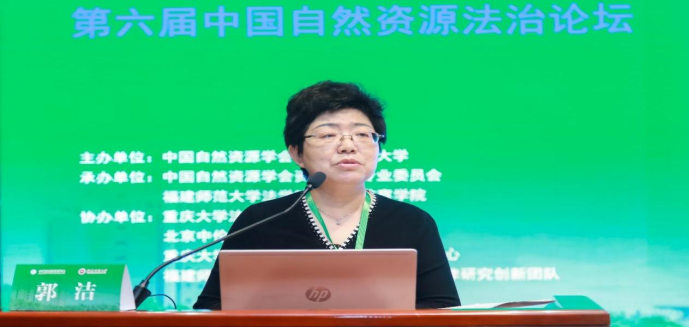 图2.郭洁教授作《国有农用地产权管理法律制度的完善》主题报告
