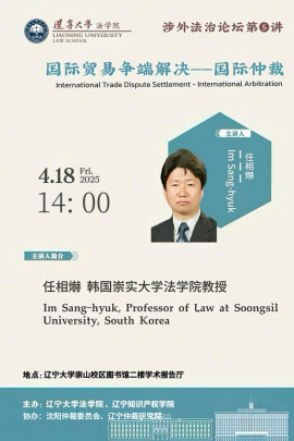 讲座预告|任相爀:国际贸易争端解决——国际仲裁
