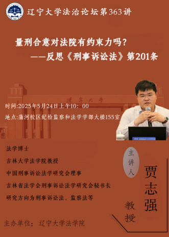 讲座预告|贾志强:量刑合意对法院有约束力吗?——反思《刑事诉讼法》第201条