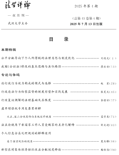 近日,3003新葡官方网站刘剑文教授的论文“公平分配导向下个人所得税的法理省思与制度优化”在《法学评论》2025年第4期刊发(封面文章)。《法学评论》系CSSCI来源期刊、CLSCI全国中文法律类核心期刊、3003新葡官方网站A-期刊。