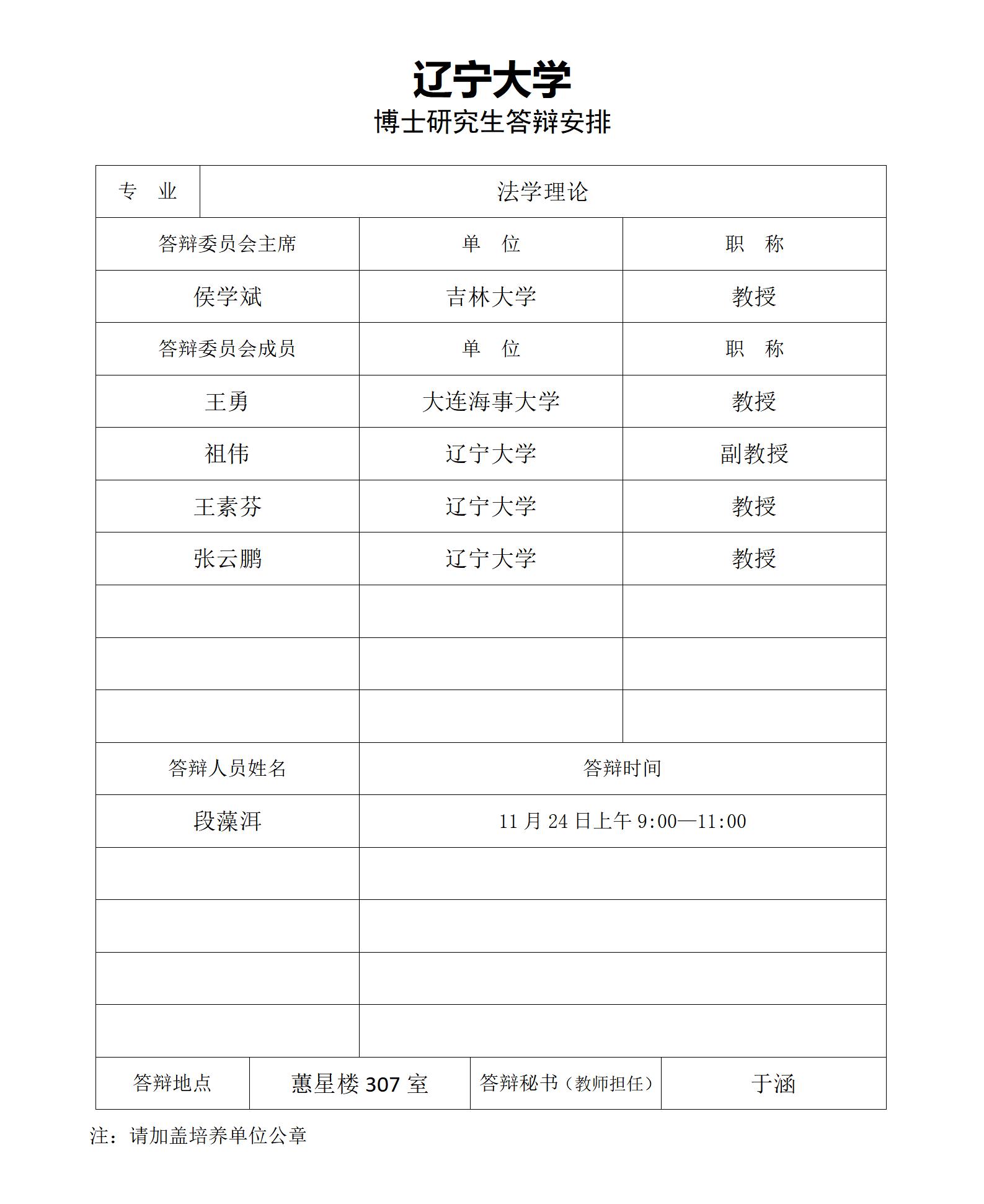 3003新葡官方网站2024-2025学年第一学期博士学位论文答辩公示