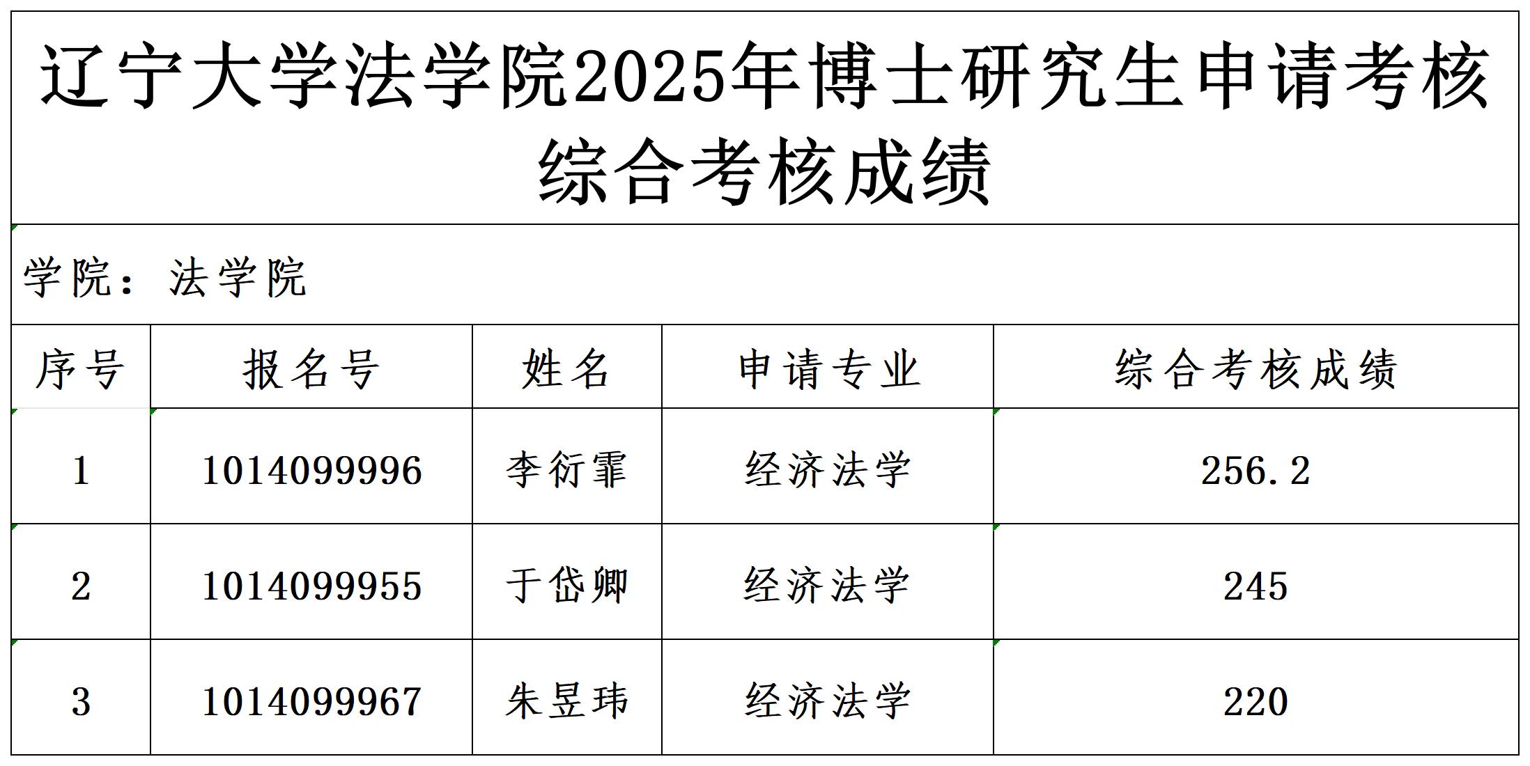 3003新葡官方网站2025年博士研究生申请考核综合考核成绩