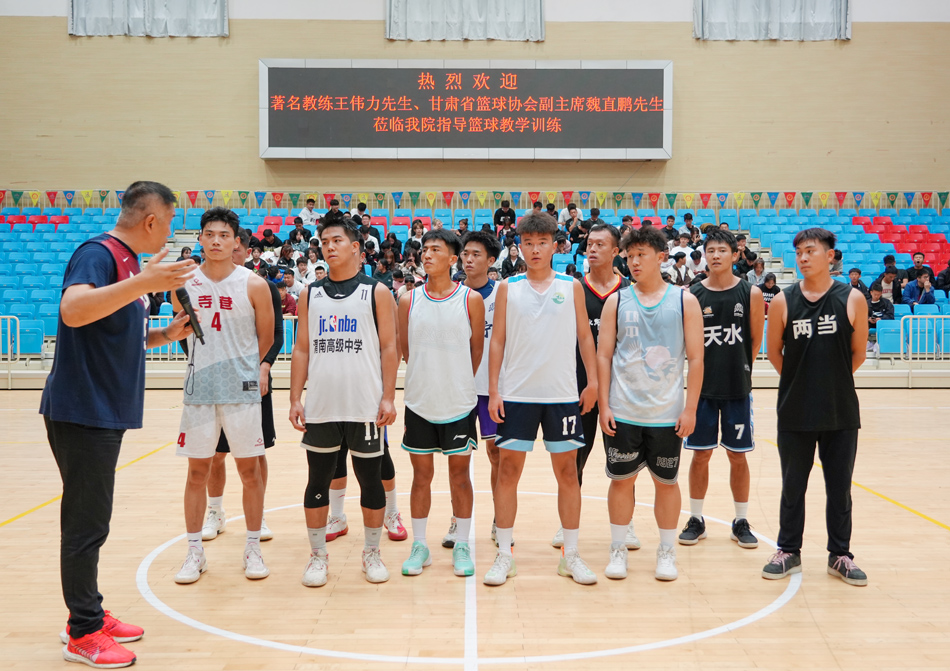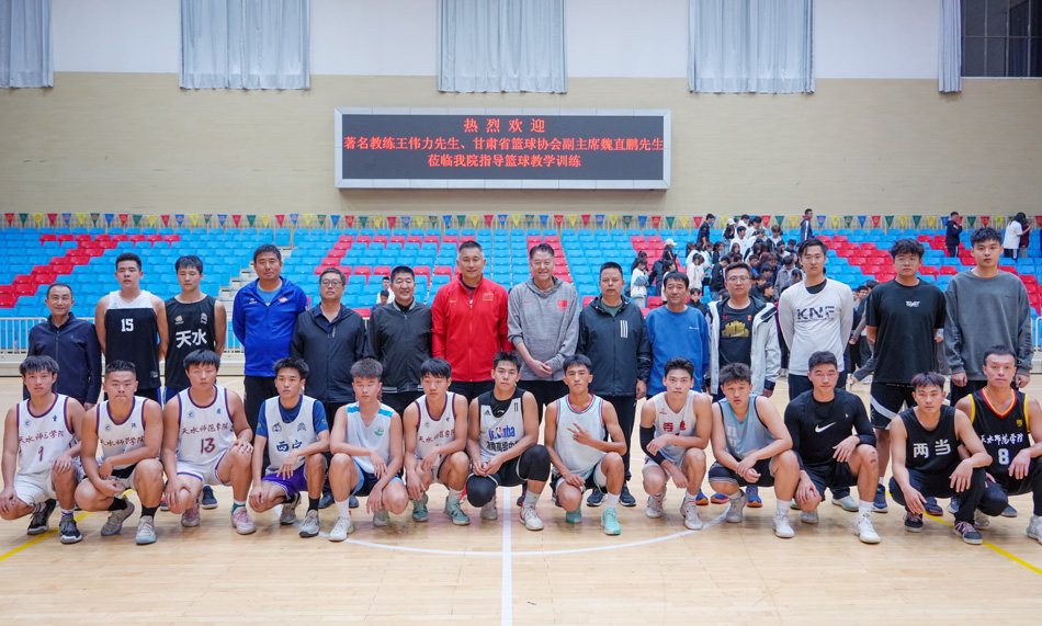 近日,beat365官方网站特邀国家级教练、原国奥队教练王伟力来校指导篮球教学训练工作。甘肃省篮协副主席魏直鹏、天水市体育局副局长王建泰应邀参加活动。